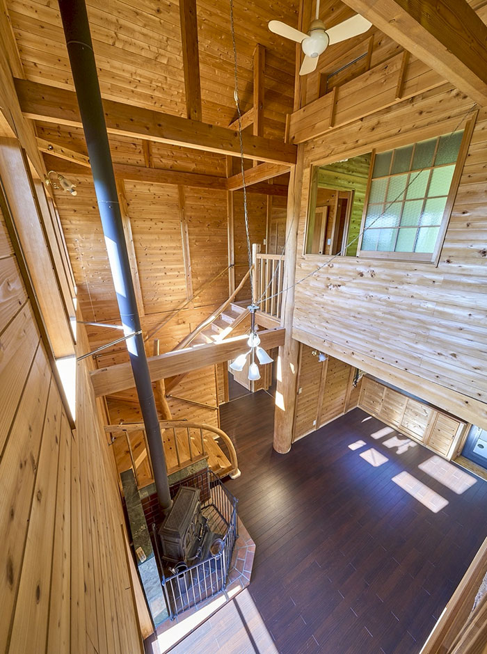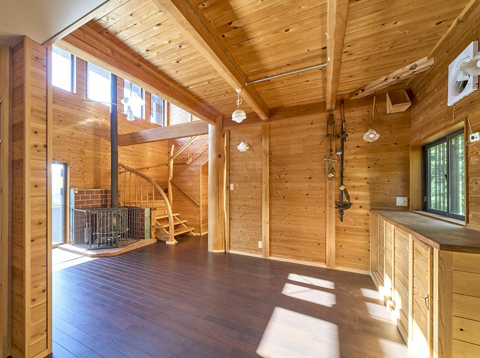建物は在来工法の3階建て、内装はログハウスの様な雰囲気に薪ストーブもございます。趣味の小屋も併設しております。