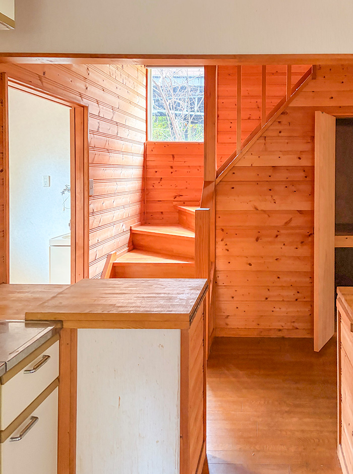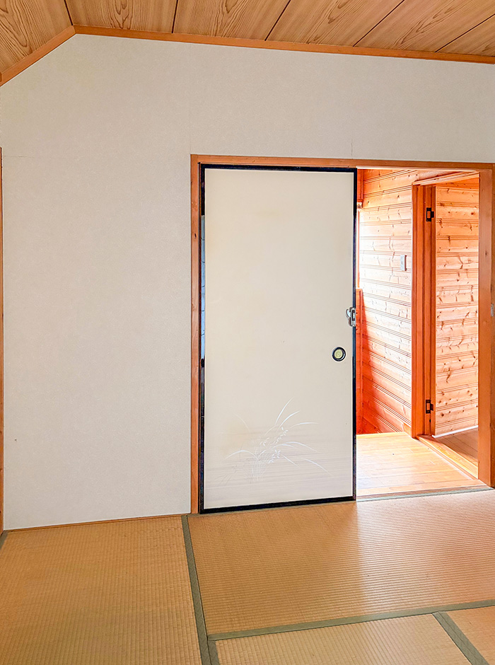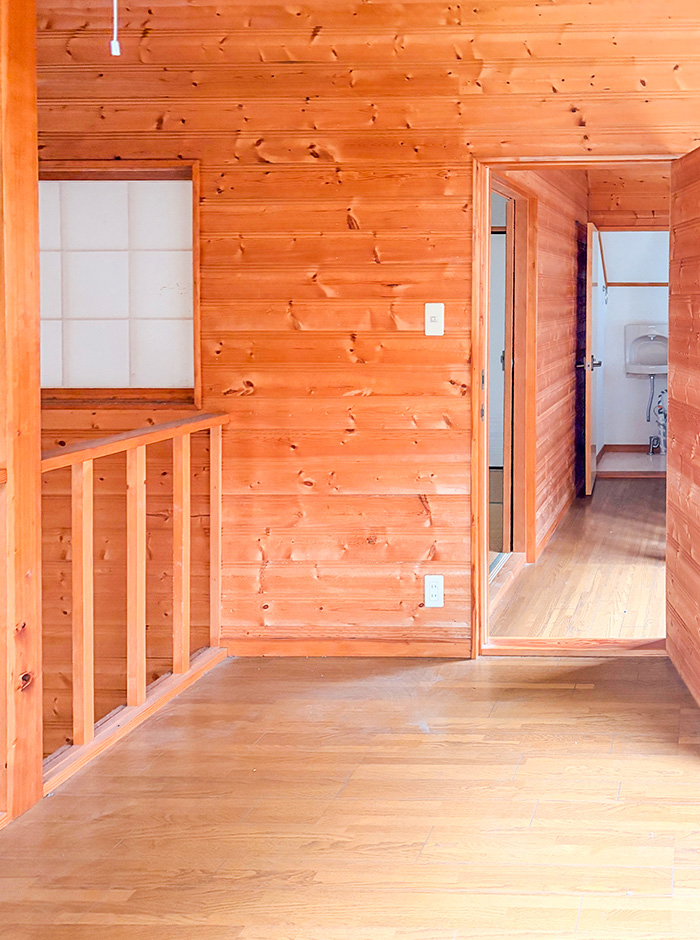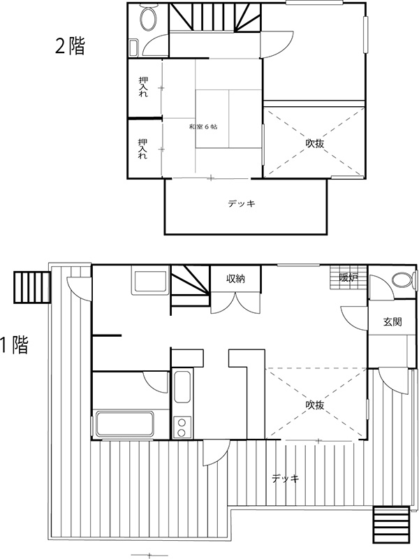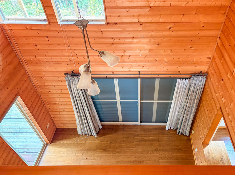 広々ウッドデッキが特徴の二階建ての中古別荘です。